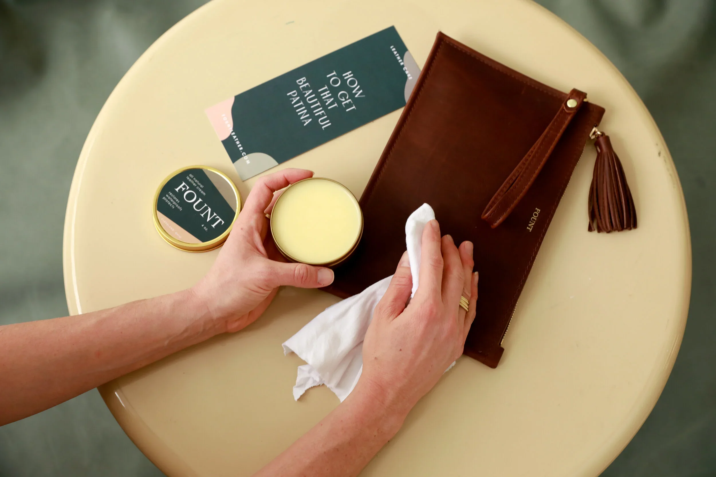 I collaborated with Jackie and Phillip Wachter of Fount Leather to design several product lookbooks that highlighted the craftsmanship and timeless quality of their leather goods. In addition, I developed packaging for their limited candle collection, leather cream tin, and other in-store print materials, helping create a cohesive brand experience that reflected Fount’s classic American heritage aesthetic.